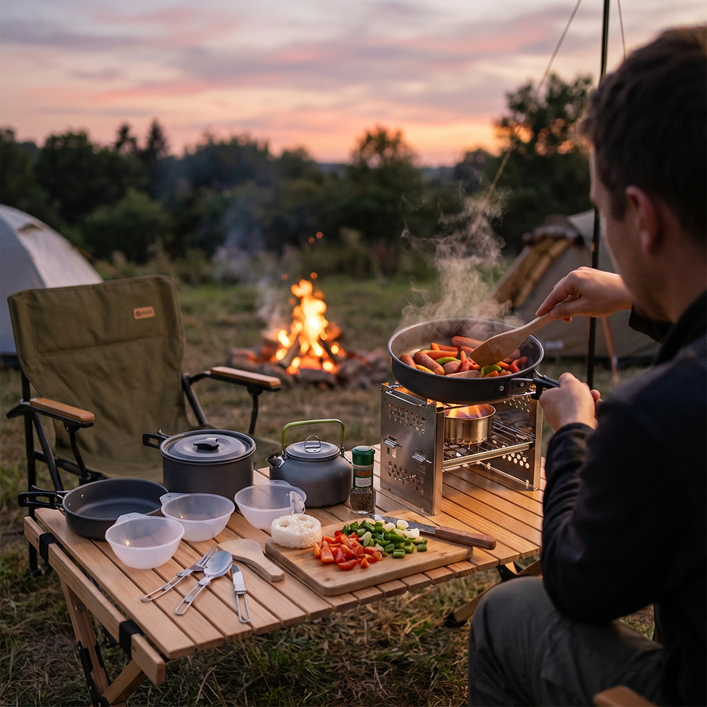 打造你的夢幻戶外廚房:露營炊事裝備挑選指南與美食提案很多人第一次露營,腦袋裡想的都是帳篷、睡袋、營地風景。 但真正讓人一露再露、回家還會一直回味的,往往不是睡得多好,而是——那一餐吃得有多爽。露營,不只是把瓦斯爐搬到戶外煮泡麵。 當你開始在營地切菜、翻炒、聞到食物香氣在空氣中慢慢擴散,你會發現,戶外廚房才是整個營地最有靈魂的地方。這篇文章,整理給所有想把「露營煮飯」升級成享受的人: 從 露營炊事裝備怎麼挑,到 實際好上手的戶外料理提案,一次幫你想清楚。為什麼露營炊事值得認真準備?在戶外煮飯,有一種很奇妙的魔力。 同樣一道菜,在家吃可能只是日常;在營地吃,卻會被記得很久。原因很簡單:沒有時間壓力沒有洗不完的碗沒有被手機打斷只有火、空氣、食物和身邊的人但前提是——裝備不能雷。鍋子不好用、桌子晃、收納混亂,浪漫會立刻變成災難。 所以,一套好的露營炊事裝備,是讓戶外料理「好玩」而不是「將就」的關鍵。露營炊事裝備怎麼挑?先抓這 5 大重點1️⃣ 爐具:穩定,比火力更重要新手最容易被「火力多強」吸引,但實際使用時你會發現—— 穩定、好控制,才是真正的王道。卡式爐適合快速料理、煮湯、煎食材; 焚火台或烤架,則更適合慢慢烤、慢慢聊天。像是 HaoO 不鏽鋼折疊烤架,收納體積小、展開穩定,對想嘗試燒烤的新手非常友善。2️⃣ 鍋具:輕量、好洗,才會常用露營鍋具不需要華麗,但一定要實用。 建議挑選:導熱快、不易沾黏重量輕、好收納一鍋多用(煮、煎、炒都行)HaoO 超輕量露營鍋具組這類設計,對於露營次數越來越多的人特別有感—— 你會發現自己開始「想煮更多東西」。3️⃣ 露營桌:戶外廚房的地基料理再厲害,桌子不穩一切免談。露營桌不只是放東西,更是:切菜的平台擺盤的舞台大家圍在一起聊天的中心HaoO 實木蛋捲桌的優點在於: 穩定、好收、木質紋理自然,放在營地裡就是很舒服,不會有工具感。4️⃣ 收納系統:煮飯順不順,全看它露營炊事最怕什麼? 不是沒菜,是找不到東西。建議炊事裝備獨立一箱:鍋具一區調味料一區餐具一區搭配 露營收納箱+掛繩系統,把常用工具掛起來,你會發現整個營地瞬間有「戶外廚房感」。5️⃣ 小物但關鍵的配角防風擋板:火力穩定度直接提升耐熱手套:安全感差很多摺疊水桶/洗碗盆:清潔流程會順到不行這些東西平常不起眼,但用過一次就回不去。懶人也能成功的露營美食提案🍳 提案一:早晨一鍋搞定食材:吐司、蛋、培根、起司作法:平底鍋一次完成優點:快、香、不用洗一堆鍋早上在營地煮早餐,幸福感會直接拉滿。🍖 提案二:晚上慢慢烤食材:醃肉、香腸、蔬菜裝備:折疊烤架+焚火台優點:大家都能參與,氣氛最好烤的不是食物,是聊天的時間。🍲 提案三:天冷就煮鍋食材:火鍋料、青菜、肉片裝備:穩定卡式爐+深鍋優點:失敗率最低,最療癒結語:戶外廚房,其實是一種生活方式露營炊事從來不是「一定要煮得多厲害」, 而是讓人願意慢下來,好好吃一頓飯。當裝備選對了、收納順了、流程簡單了, 你會發現—— 戶外廚房,不只是煮飯的地方,而是整個營地最溫暖的角落。如果你也想把露營,從「睡一晚」變成「好好過一天」, 那麼,從一套順手的炊事裝備開始,會是最值得的投資。